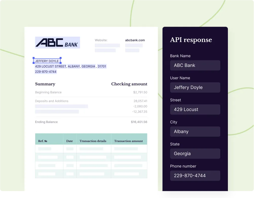 Extract accurate names, amounts, addresses from scanned bank statements in PDF
