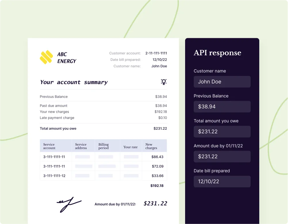 Unstructured documents like invoices, banks statements, contracts, rent rolls, bill of lading, energy/utility bills, ACORD forms, IRS Form 1040 are hard to read.
