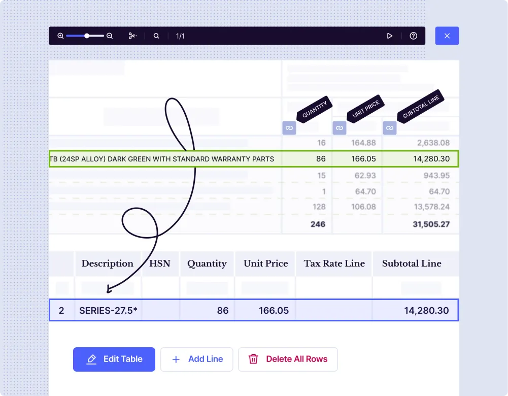 Docsumo’s intelligent AI enables you to extract and easily review only the fields you need from such complex documents.